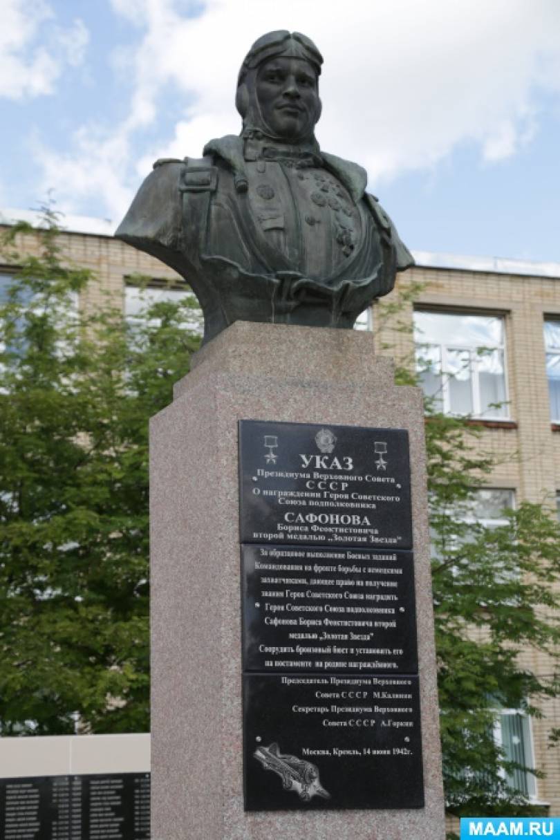 Каждый день я с нетерпеньем Жду, когда пойдём гулять, Потому что мама может Обо всём мне рассказать: Про скульптуры, монументы И про памятник Победы, Про спортсменов, мастеров, Знаменитых земляков. Дважды Герой Советского Союза Б.Ф.Сафонов Курган Славы Братская могила №2 Братская могила №1