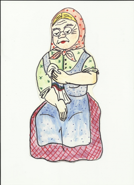 1. Сегодня мы с вами встретимся с героями сказки «Федорино горе». (Выставляется иллюстрация). Вы узнали кто это? Да, это бабушка Федора. Если вы помните, от нее ушла посуда, а она сидела и горевала. Давайте назовем посуду, о которой горевала бабушка Федора (это кастрюли, б. Федора горевала о кастрюлях).