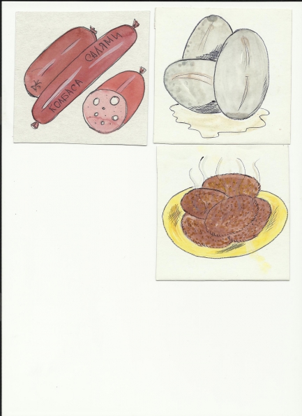 4. Ребята, а вы помните, что б. Федора жила не одна? С ней жили ее любимые коты. Как вы думаете, а коты горевали о посуде? Нет, они вспоминали о еде, о продуктах питания. Давайте заглянем в кастрюлю и узнаем о чем мечтали коты. (Это котлеты, коты мечтают о котлетах)